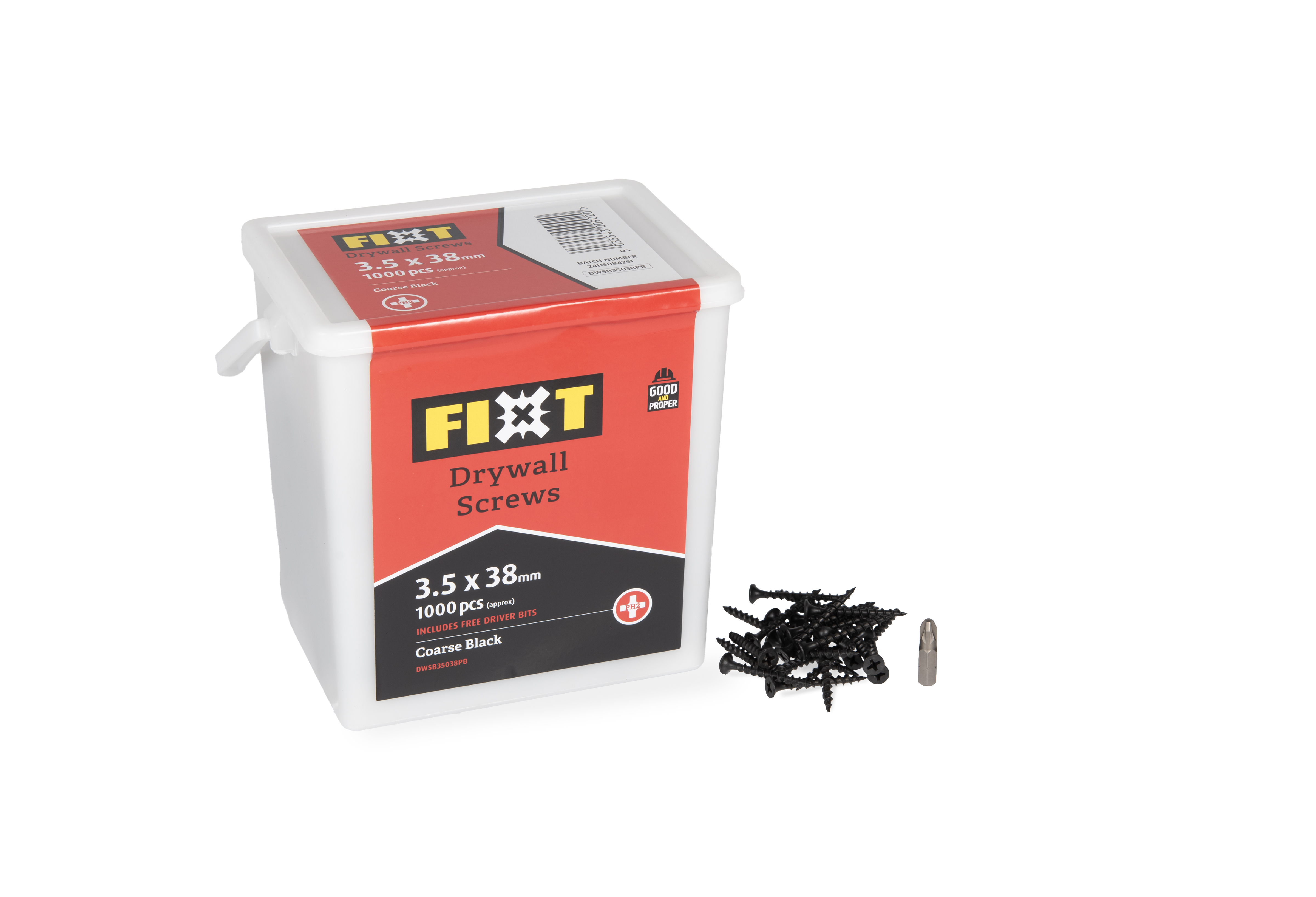 FIXT Drywall Screws are a premium quality plasterboard screw. Our Drywall Screws are engineered to make every DIY job stronger, easier, and longer lasting. Designed with an ultra-sharp point to instantly penetrate the board, a bugle head to prevent surface damage and ensure a flush finish but also a deep PH2 drive recess. FIXT Drywall Screws are available with a coarse thread and a black phosphate coating to fix plasterboard to timber. Finished with high quality coatings to prevent corrosion and recess clogging, they are available in a wide range of sizes and pack quantities. All our FIXT Drywall Screws offer the same consistency of quality and performance.