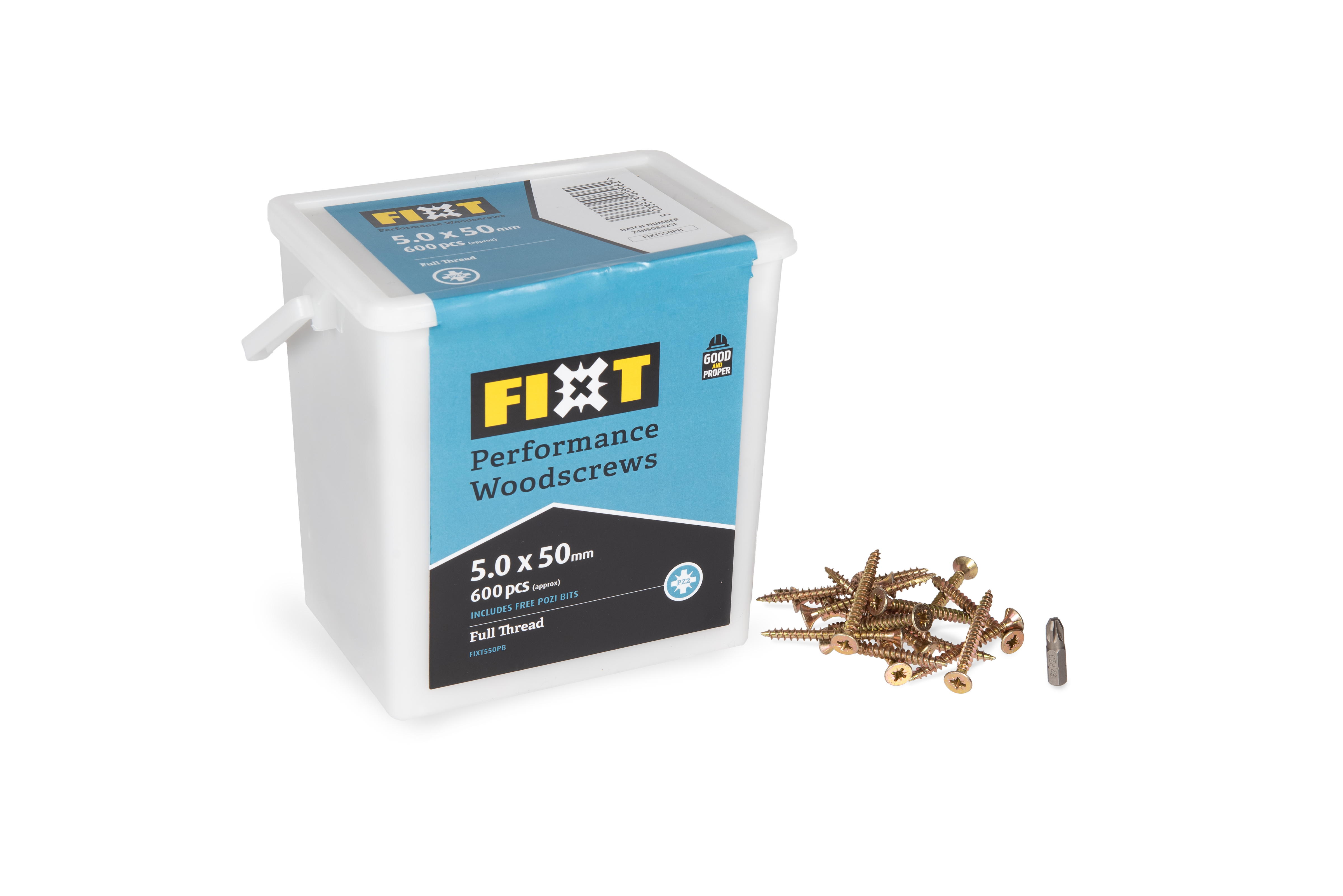 FIXT Performance Woodscrews are engineered to make every DIY job stronger, easier, and longer lasting. Designed with a recessed double countersunk head for extra strength and break resistance, these screws drive smoothly and hold with exceptional power. The wide single thread cuts cleanly into wood, gripping and compressing the fibres for outstanding pull-out resistance. Whatever you build stays solid. A Yellow Tropicalised coating gives superior corrosion protection, while the reinforced drive recess ensures a firm bit fit with less slipping and faster installation. Fully CE/UKCA certified, FIXT gives you professional grade performance at a DIY friendly price, making it the reliable choice for indoor and outdoor projects alike.