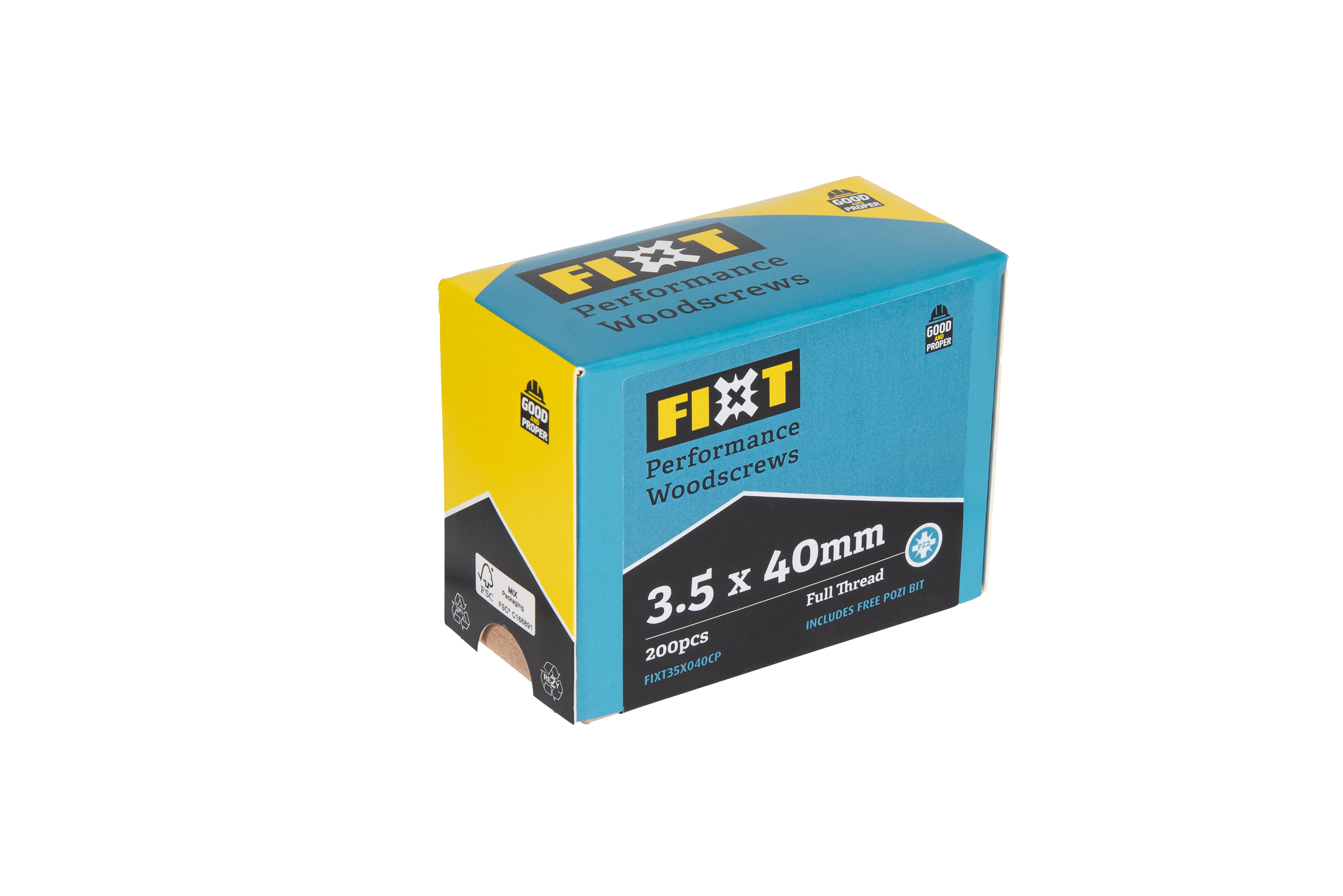 FIXT Performance Woodscrews are engineered to make every DIY job stronger, easier, and longer lasting. Designed with a recessed double countersunk head for extra strength and break resistance, these screws drive smoothly and hold with exceptional power. The wide single thread cuts cleanly into wood, gripping and compressing the fibres for outstanding pull-out resistance. Whatever you build stays solid. A Yellow Tropicalised coating gives superior corrosion protection, while the reinforced drive recess ensures a firm bit fit with less slipping and faster installation. Fully CE/UKCA certified, FIXT gives you professional grade performance at a DIY friendly price, making it the reliable choice for indoor and outdoor projects alike.