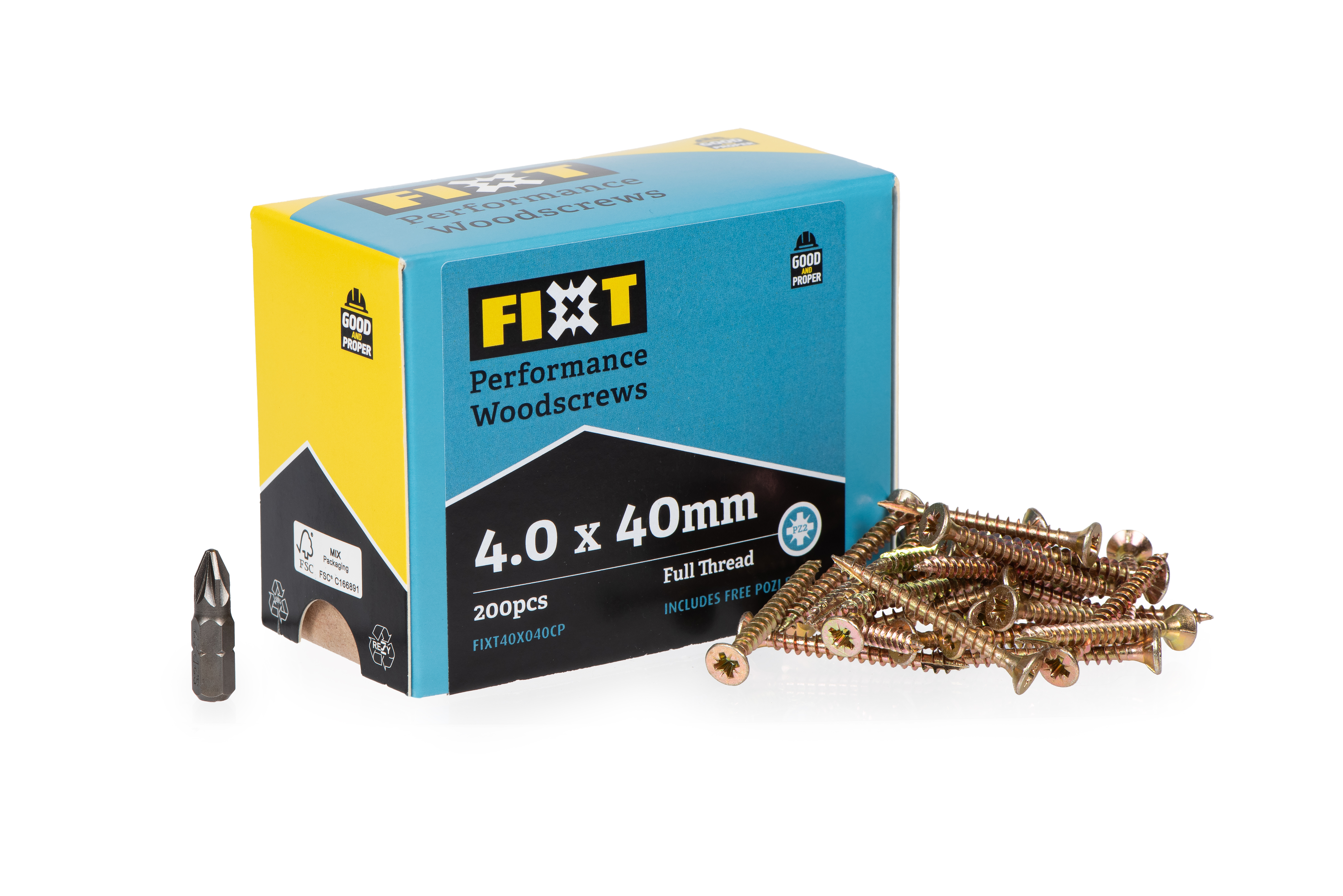 FIXT Performance Woodscrews are engineered to make every DIY job stronger, easier, and longer lasting. Designed with a recessed double countersunk head for extra strength and break resistance, these screws drive smoothly and hold with exceptional power. The wide single thread cuts cleanly into wood, gripping and compressing the fibres for outstanding pull-out resistance. Whatever you build stays solid. A Yellow Tropicalised coating gives superior corrosion protection, while the reinforced drive recess ensures a firm bit fit with less slipping and faster installation. Fully CE/UKCA certified, FIXT gives you professional grade performance at a DIY friendly price, making it the reliable choice for indoor and outdoor projects alike.