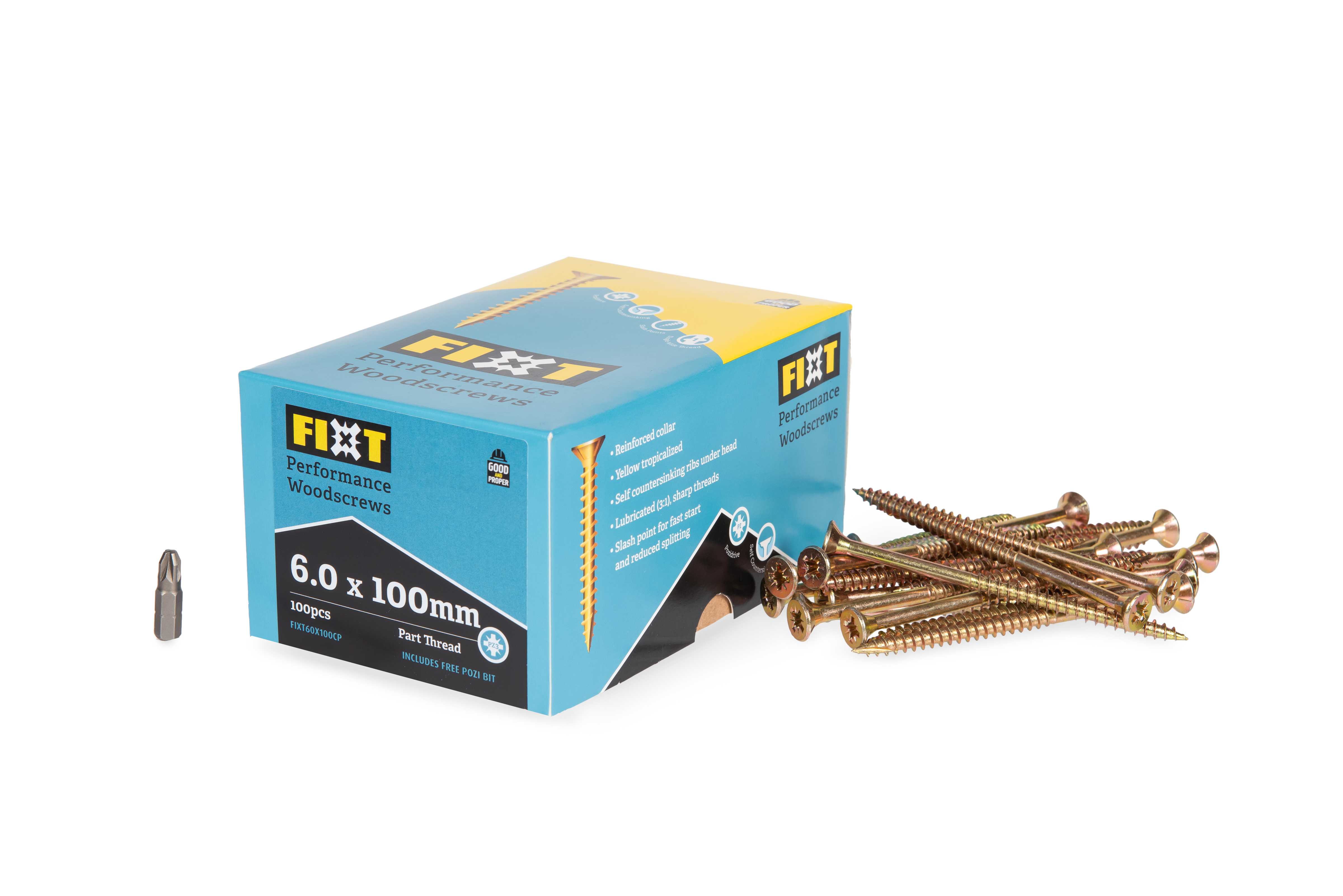 FIXT Performance Woodscrew 6.0 X 100mm CP (BOX 100)