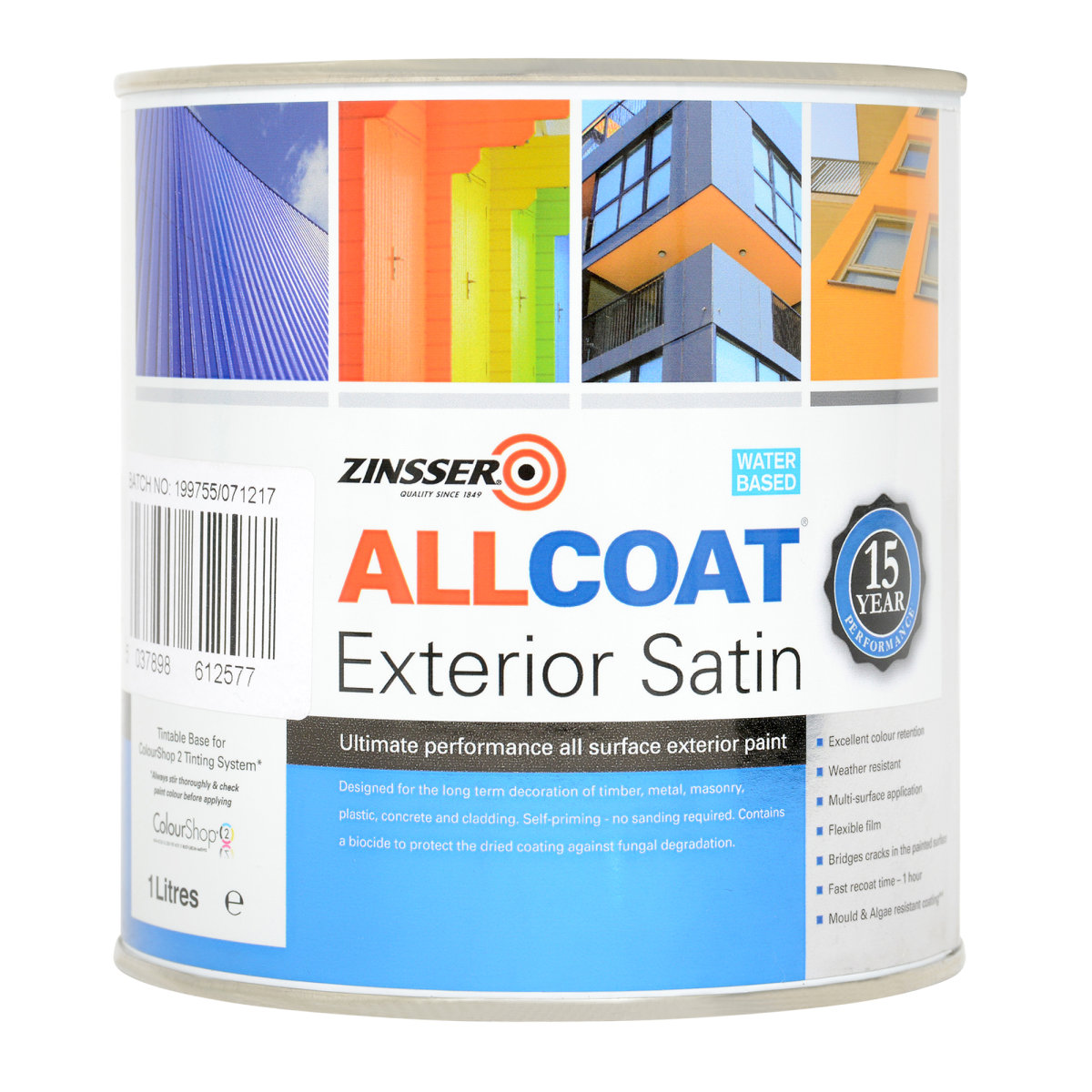 Zinsser AllCoat® Exterior (Solvent-Based) offers superior protection for wood, metal, masonry, plastic, and cladding. Its mould-resistant formula ensures long-lasting durability, with excellent resistance to cracking, blistering, and flaking for up to 15 years. Self-priming and suitable for application in temperatures as low as 5°C, this paint resists rain within one hour and dries quickly, making it perfect for all-weather projects. With excellent colour retention and a vapour-permeable finish, it’s ideal for buildings with timber or metal cladding.